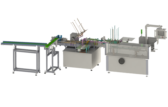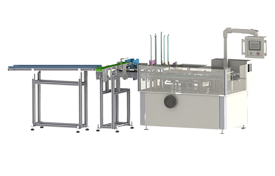 該機廣泛應用于化妝品行業(yè)的面膜、眼膜的自動裝盒,也適用于類似該物料形狀的自動裝盒。