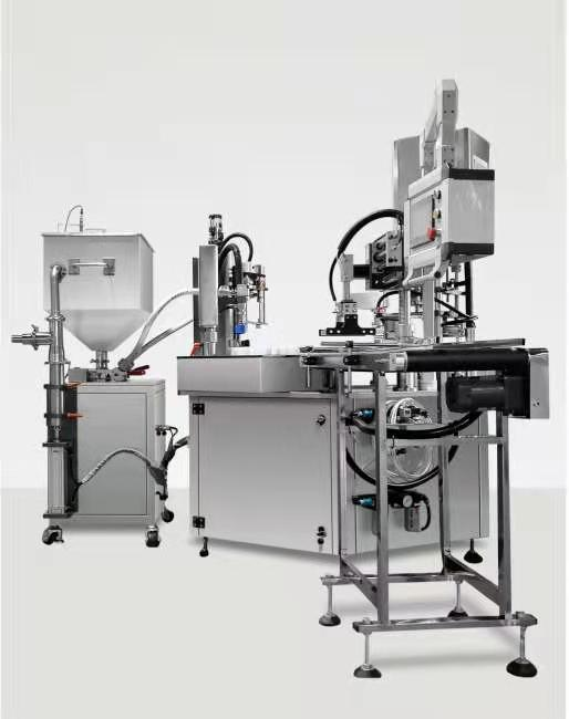 全自動轉(zhuǎn)盤水乳膏霜灌裝旋蓋一體機(jī)