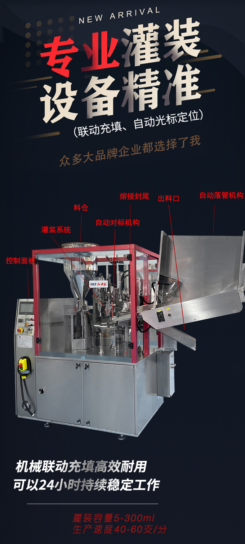和力泰自主研發(fā)和生產(chǎn)的軟管灌裝封尾機(jī)有如下特點(diǎn):