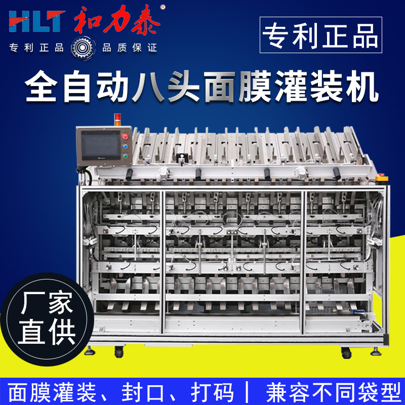 和力泰面膜灌裝機又分四頭面膜灌裝機、六頭面膜灌裝機、八頭面膜灌裝機、十頭面膜灌裝機、雙腔面膜灌裝機、三部曲面膜灌裝機、異型面膜袋灌裝機,高配定制面膜灌裝設(shè)備;
