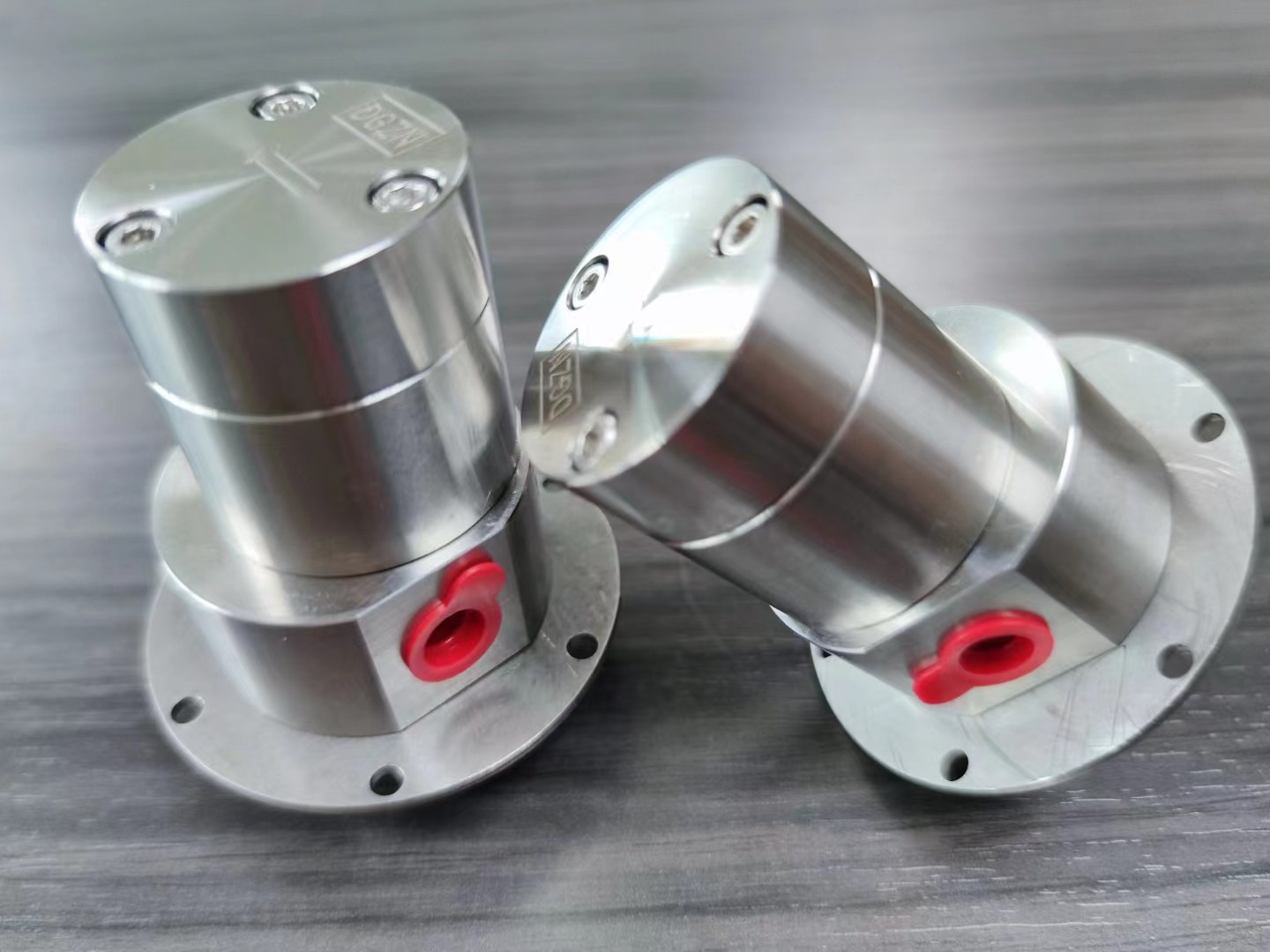 磁力齒輪泵,采用磁力耦合傳動,實現(xiàn)無泄漏、無脈動平穩(wěn)輸送。316不銹鋼的殼體,PEEK材料的齒輪,聚四氟乙烯的密封材料。采用直流無刷電機為動力,電機軸端和稀土永磁的外磁環(huán)連接,驅(qū)動磁力齒輪泵工作
