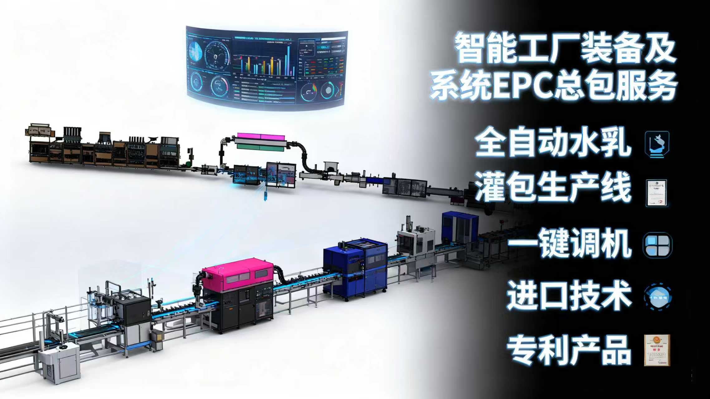 和力泰從前端灌裝到后端的開箱碼垛全自動線方案設計與制造;同時可以根據(jù)需求做柔性化生產(chǎn),最大程度的滿足客戶對效率,場地,成本的控制,從做到客我雙贏的設計方案